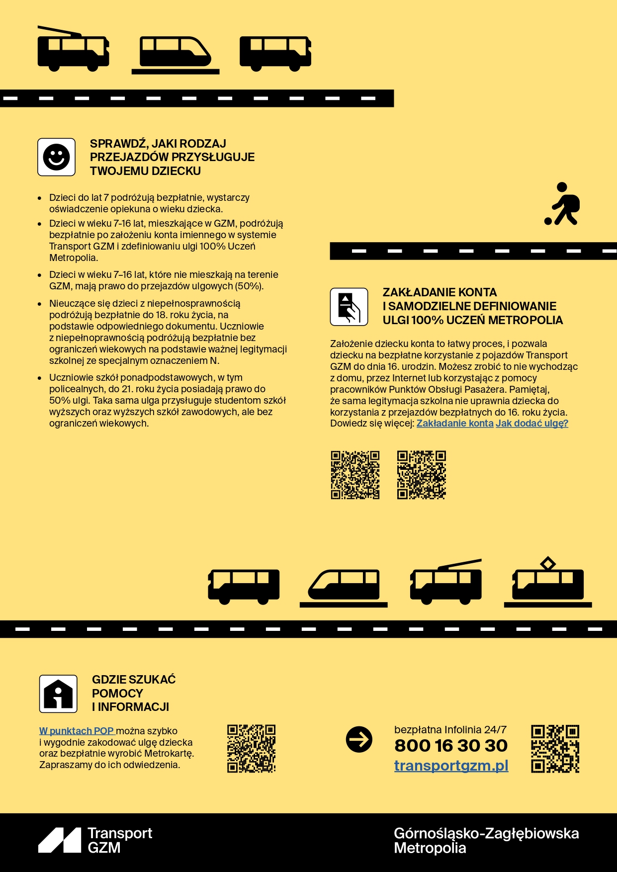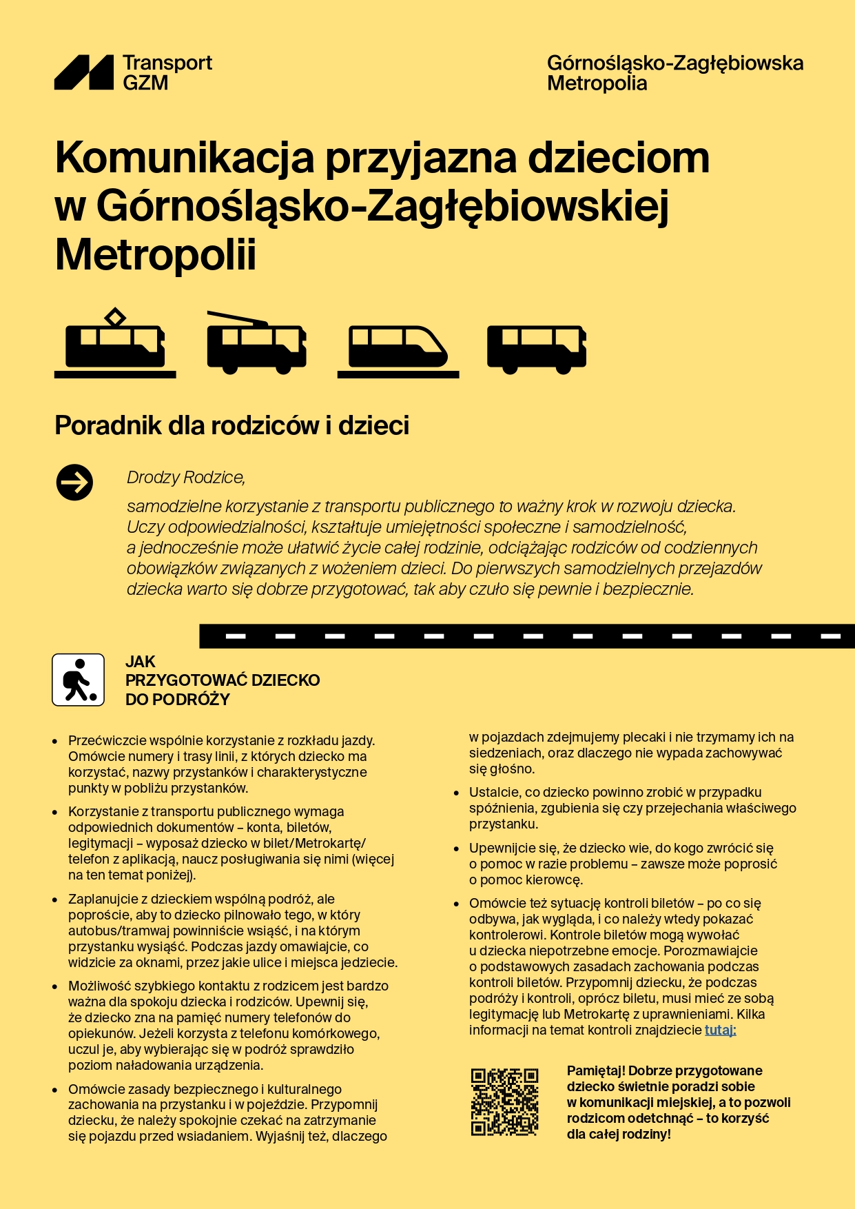 Przygotowaliśmy krótki poradnik dla rodziców i najmłodszych. To zbiór istotnych informacji, z którymi warto się zapoznać przed pierwszą podróżą dziecka komunikacją miejską Transport GZM.