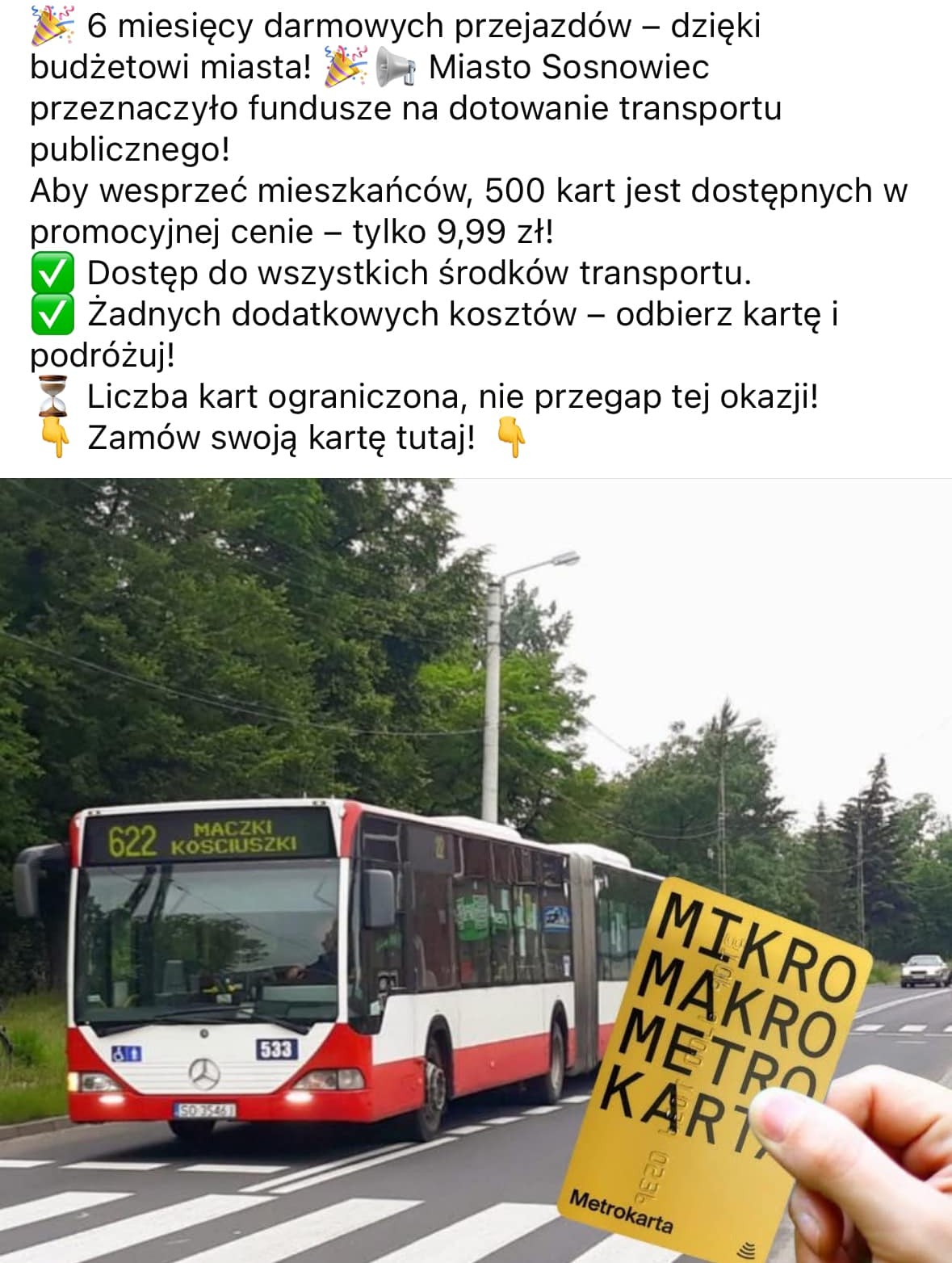 Zarząd Transportu Metropolitalnego oraz Górnośląsko-Zagłębiowska Metropolia nie prowadzą sprzedaży żadnych kart uprawniających do darmowych przejazdów. Oficjalne bilety na przejazdy komunikacją miejską można zakupić poprzez aplikację Transport GZM i inne aplikacje, z którymi ZTM nawiązał współpracę (SkyCash, mPay, moBiLET, zBiletem oraz jakdojade), w punktach sprzedaży oraz biletomatach. Szczegółowe informacje o biletach i ofercie znajdziecie na naszej stronie Transport GZM w zakładce "Bilety".