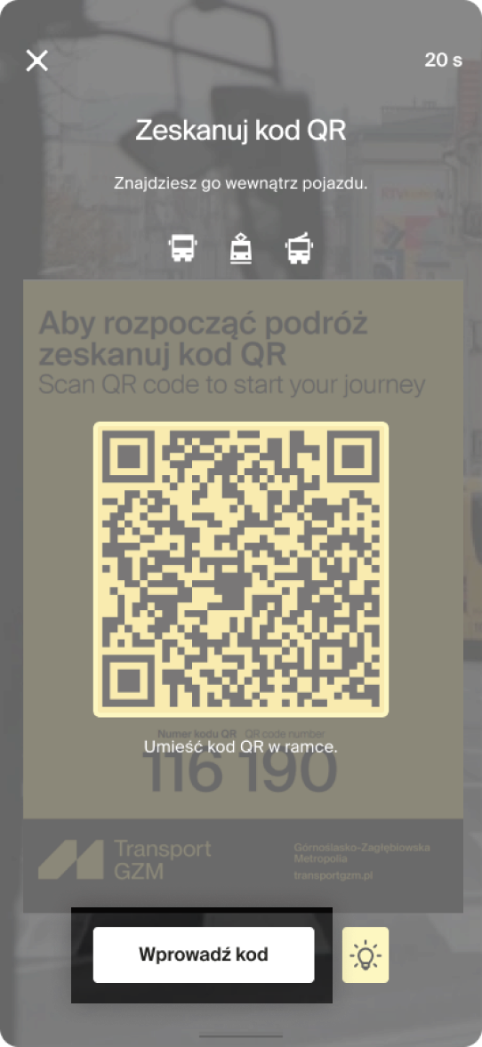 Rozpoczęcie podróży Start/Stop odbywa się poprzez zeskanowanie w pojeździe kodu QR.