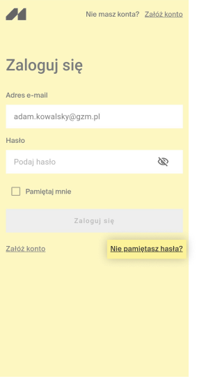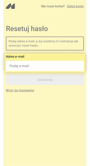 Następnie na ekranie „Zaloguj się” wybierz opcję „Nie pamiętasz hasła?”. Wpisz w formularzu adres e-mail wykorzystany do utworzenia konta. Kliknij „Zatwierdź”.