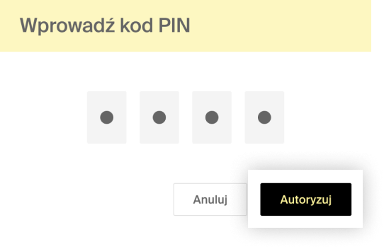 Potwierdź, że jesteś właścicielem konta wpisując kod PIN oraz kliknij „Autoryzuj”.