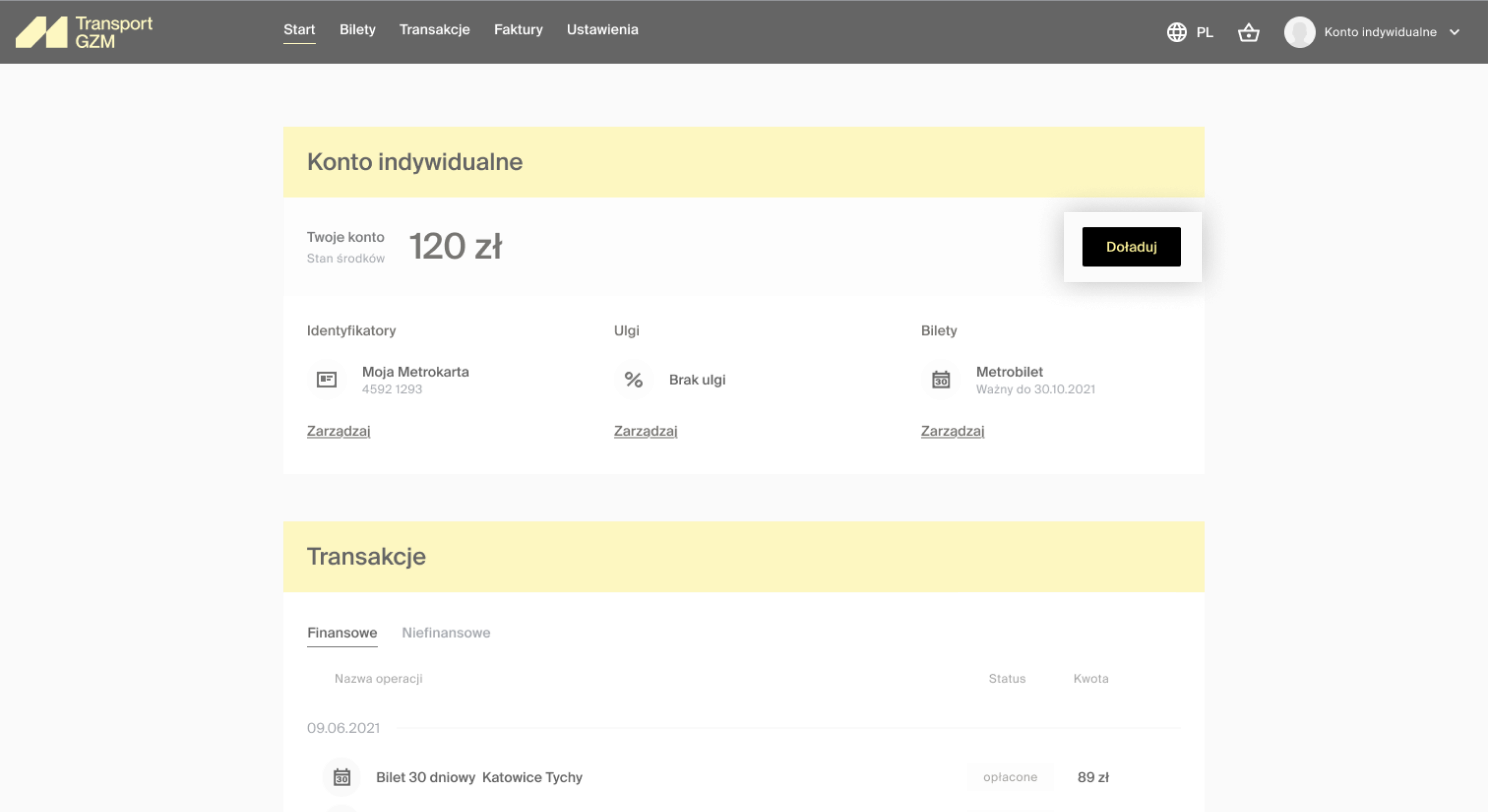 W Systemie Transport GZM każdy Użytkownik może wygodnie kupować bilety za pośrednictwem Portalu Klienta i Aplikacji Mobilnej. Oprócz zapłaty za pomocą bliku, przelewu z rachunku bankowego czy karty płatniczej, użytkownicy mogą płacić z wykorzystaniem środków zapisanych na „Twoim koncie”.